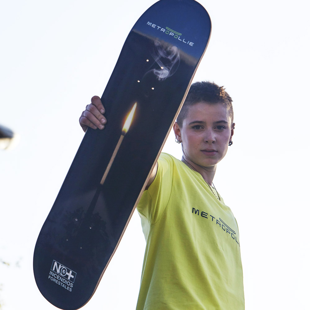 Diseñar una colección completa de tablas de skate. La Colección NO+. Esta colección tiene 10 conceptos sobre los que el cliente nos pidió crear una línea común y una imagen concreta para cada tabla. Aceptamos el reto de crear una nueva línea gráfica dentro del mundo del skate rompedora, moderna y que a la vez, cada imagen narrase la idea de cada concepto como si de un cuento se tratara.
